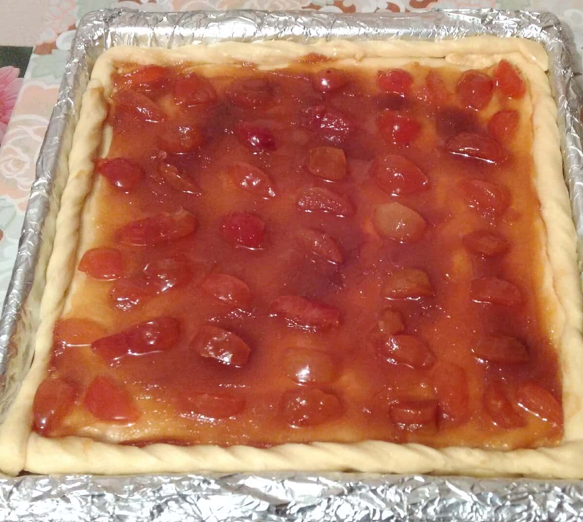 12 . Змащую тісто яблучним повидлом і прикрашаємо часточками яблук.