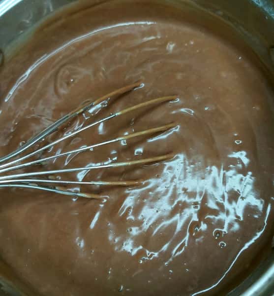8. Добре помішати, поки не розчинитися шоколад та масло. Маса має стати густою.