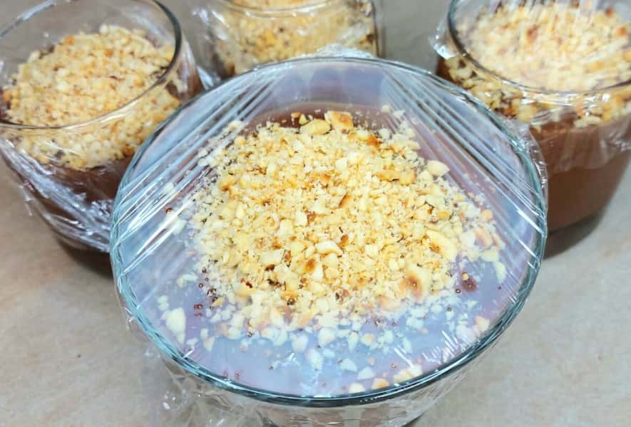 13. Прикрасити пудинг горіхами, остудити до кімнатної температури та, накривши харчовою плівкою, поставити в холодильник хвилин на 30.
