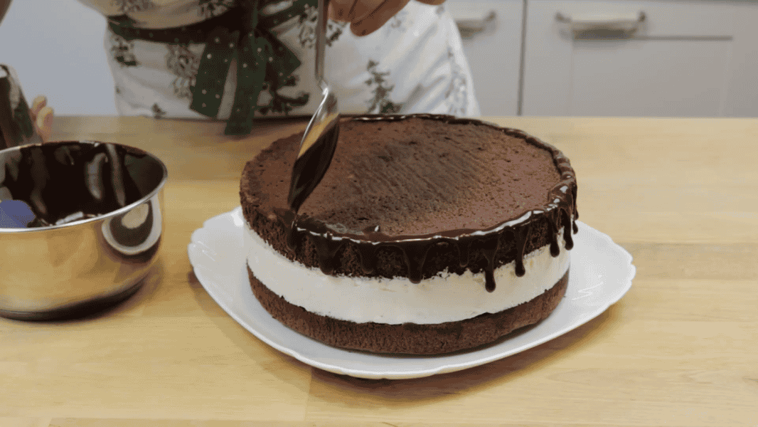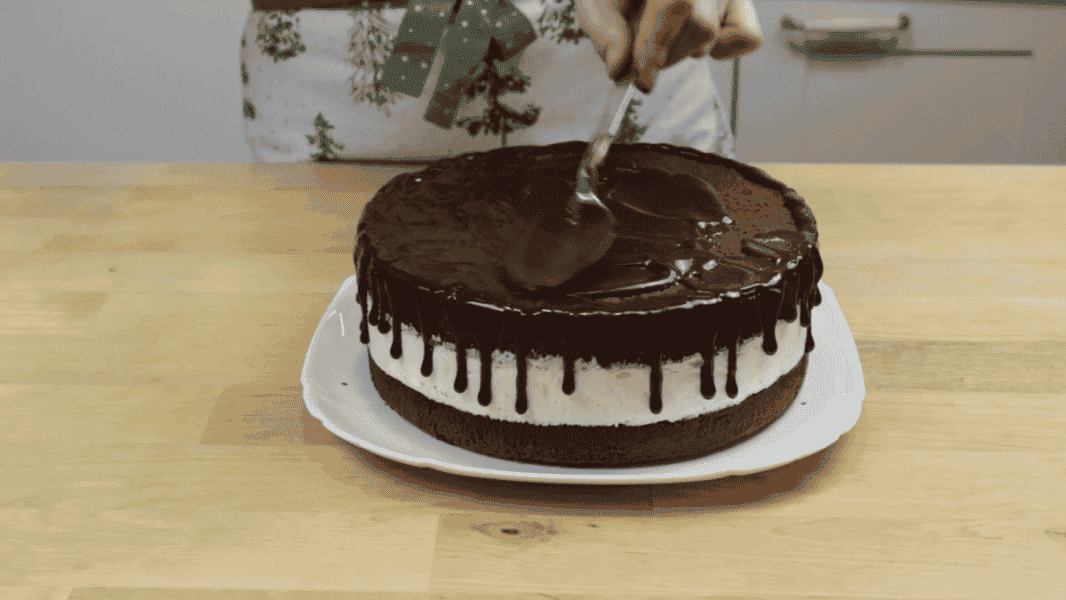 І покриваю глазур’ю верх торта.