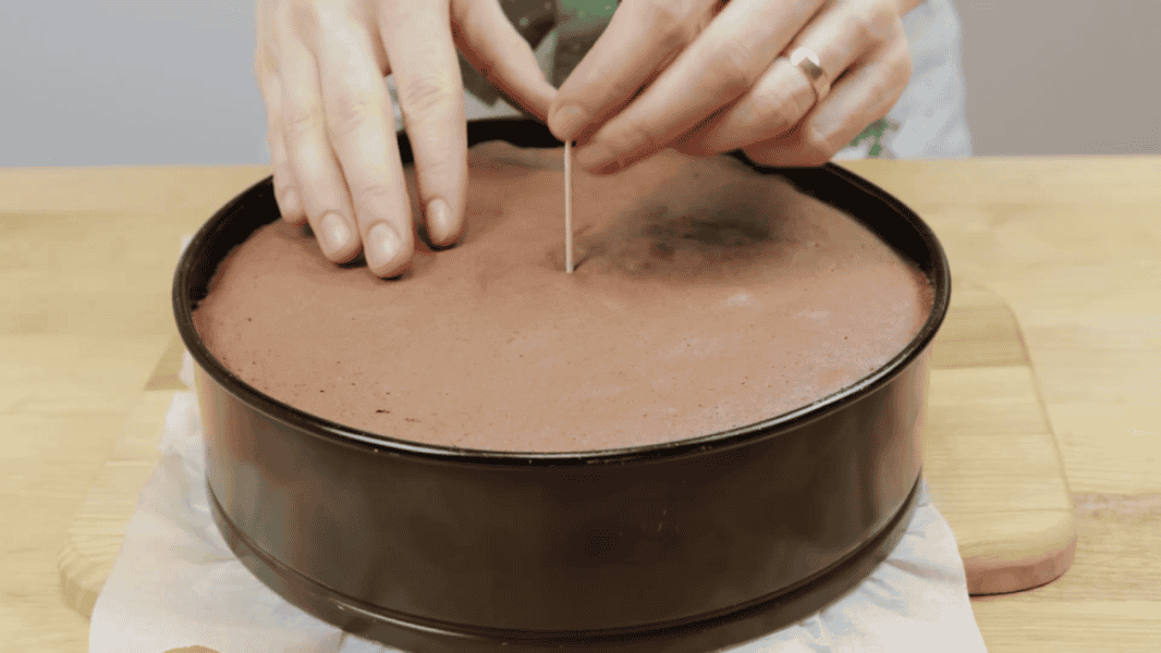 Випікати бісквіт потрібно при 170 °С – 40 хвилин . Час випікання та температура залежать від особливостей духовки. Готовність перевіряю зубочисткою, вона має виходити без залишків сирого тіста.