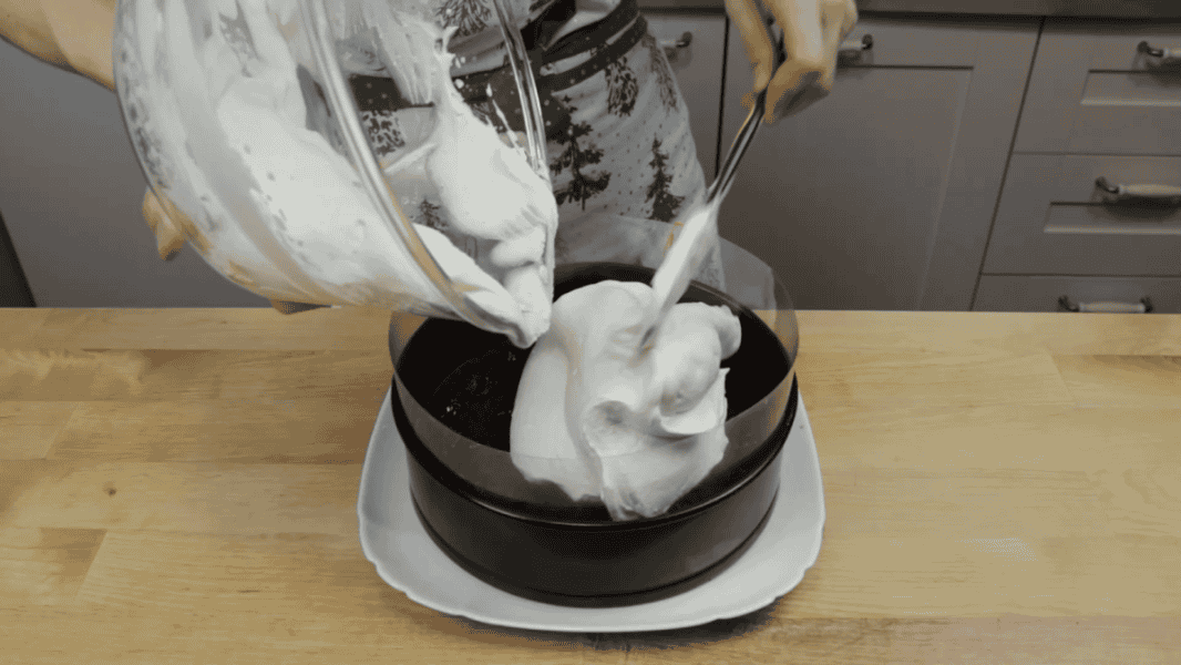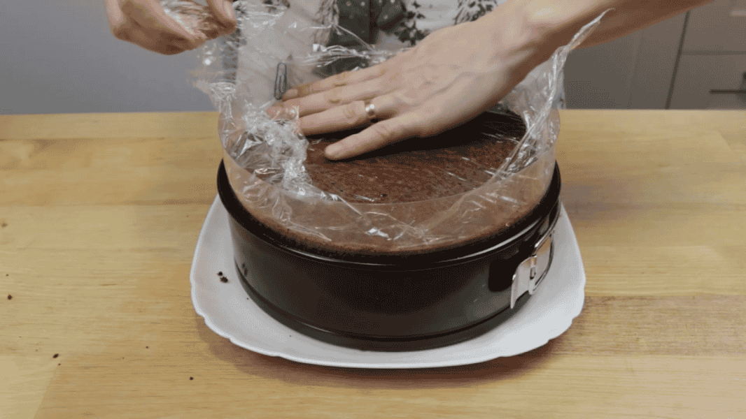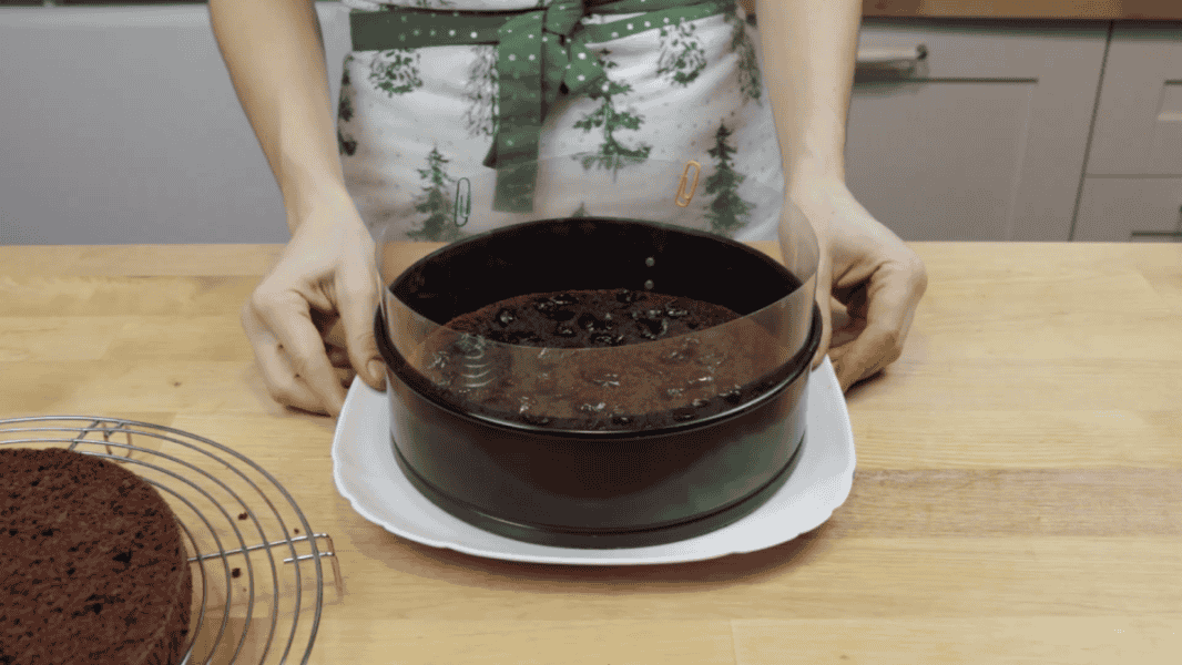 Одягаю кільце від роз’ємної форми, і додатково закриваю його ацетатною плівкою або харчовою плівкою, або пергаментним папером.