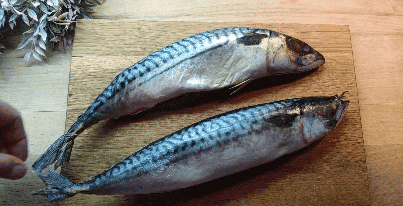 1. Скумбрію розморожуємо не до кінця. Відрізаємо голову, хвіст, видаляємо начинки, всі плівки.