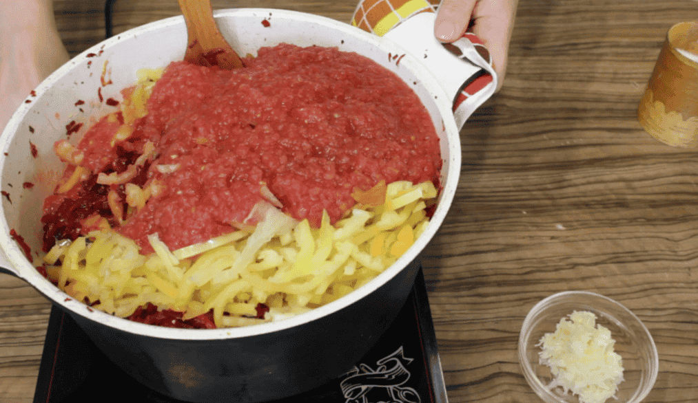 Після того як борщова заправка протушиться, не вимикаючи нагрівання, розкладаємо її по стерилізованих баночках, герметично закриваємо, перевертаємо на кришки, укутуємо чимось теплим.
