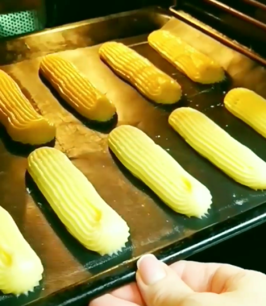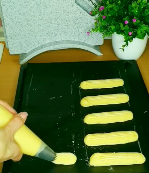 Перекласти тісто в кондитерський мішок із насадкою шириною 1,5 см і відсадити еклери.