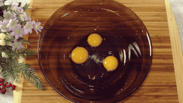 У миску з яйцями додаю дрібку солі і перемішую.