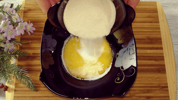 Вершкове масло розтопити і поки воно тепле всипаю в нього цукор, перемішую, так він швидко розчиниться.