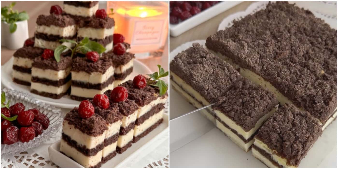 Шоколадний пиріг з сирним прошарком, що нагадує на смак ванільний чізкейк. Зверху трохи хрумкий, а всередині м’який. Дуже смачний і в міру солодкий. Якщо любите більш солодкі десерти, відрегулюйте насолоду на свій смак.