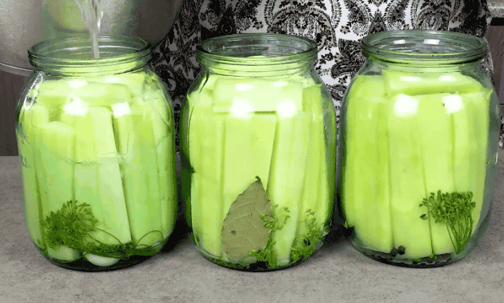 Заповнюю банку кабачками. Намагайтеся укладати кабачки щільніше, щоб кабачків більше помістилося у банку.