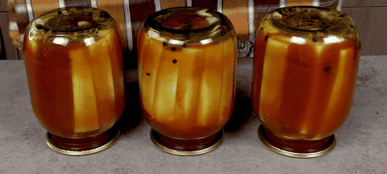Маринаду мені вистачає на 3 банки по 800 гр. та 2 банки по 0,5 л.