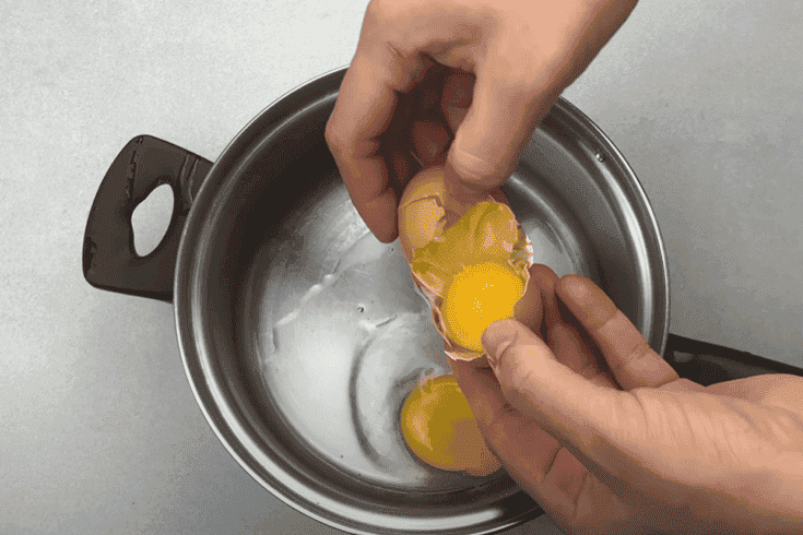 У каструлю або сотейник розбиваємо курячі яйця.