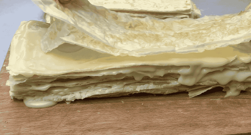 Після закінчення зазначеного часу дістаємо тісто, розбираємо його на шари.