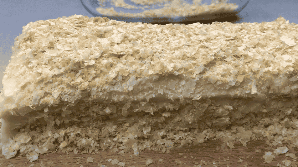 Верхні пласти, які злегка підрум’янилися, кришимо руками. Це буде служити прикрасою торта.