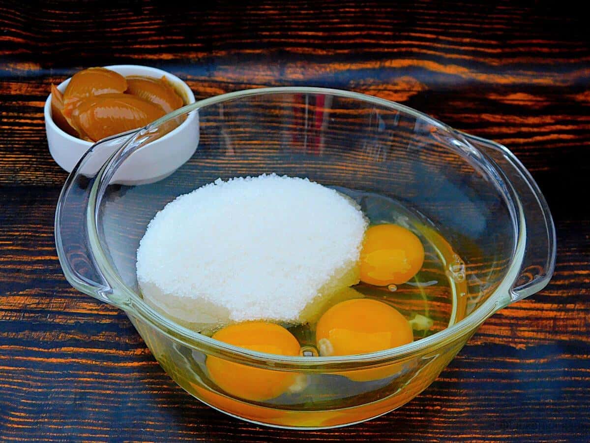 - У миску помістити яйця ( кімната температури ) і цукор.