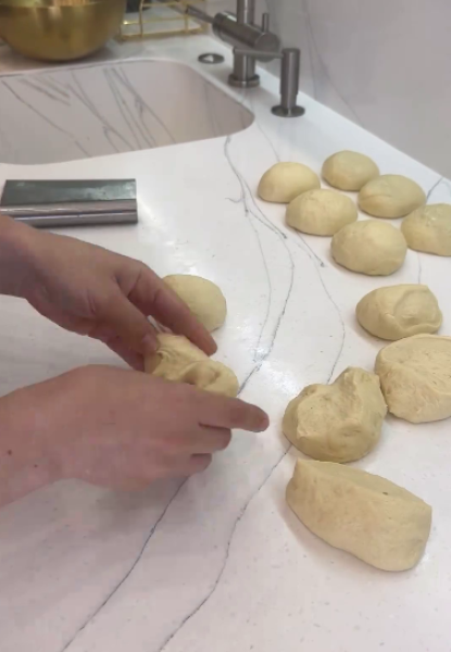 Після підйому ділимо тісто на маленькі рівні клубочки.