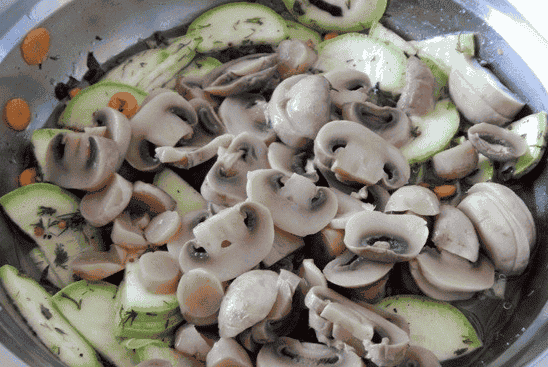 Сьогодні приготуємо салат із кабачків та грибів. Найпоширеніший гриб – печериці. Гриби трохи відварити, а кабачки свіжими замаринуємо з приправами, щоби вони пустили сік. Потім все змішаємо і салат готовий!