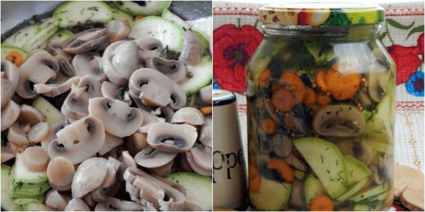Печериці потрібно купити будь-якого розміру, якщо знайшли дрібні, їх не потрібно різати. Кабачок краще консервувати молодий, щоб там не було великого насіння. Морквину в мене молода, дуже ароматна та смачна.