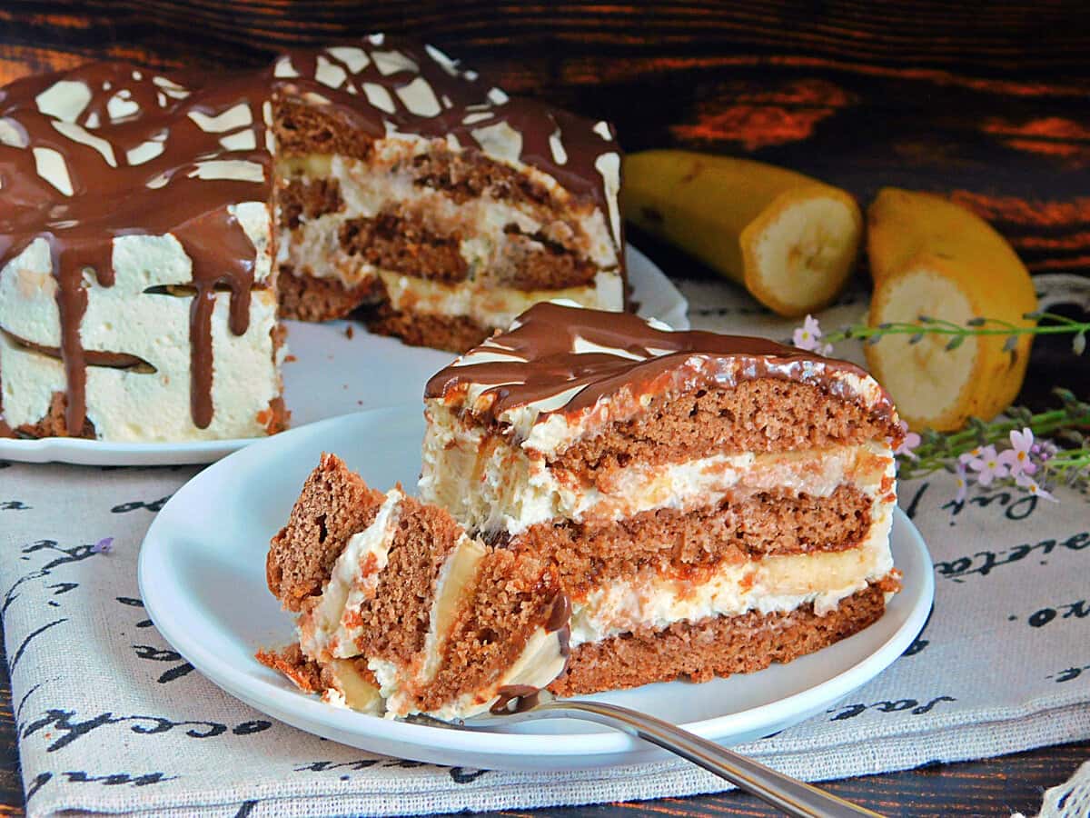 Десерти без випічки – особлива категорія рецептів, які завжди виручать, якщо немає часу або бажання возитися з тістом. До того ж, такі страви дуже складно зіпсувати, тому створити справжній шедевр може навіть починаюча господиня. Сьогодні приготуємо торт з пряників з бананом і сметаною. Традиційні коржі замінять шоколадні пряники, крем – сметанний, ну а банани відмінно доповнять торт і зроблять його ще більш смачним.