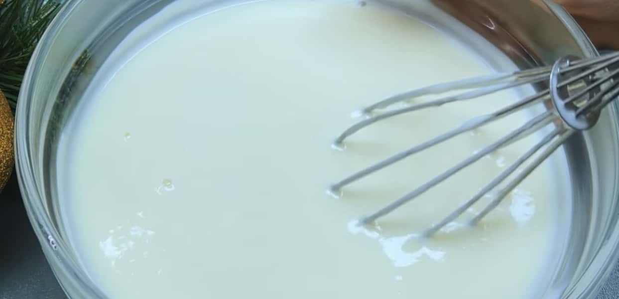 В іншу чашу викладаємо сметану, додаємо цукор та ретельно розмішуємо вінчиком. Даємо постояти 10-15 хвилин.