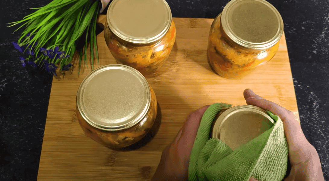 Перевертаємо банки на кришки, накриваємо теплим пледом і залишаємо до охолодження.