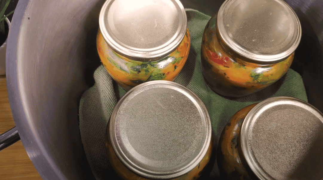 З цієї кількості інгредієнтів виходить 4 банки по 550 мл. Прикриваємо прокип’яченими кришками.