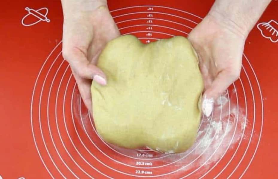- Всипаємо просіяне борошно, але не все відразу, а частинами і замішуємо тісто. Усього знадобиться 400 г борошна. Тісто виходить дуже ніжне та м’яке. Викладаємо його на килимок, припилений борошном, і розкачуємо в пласт завтовшки 1 см.