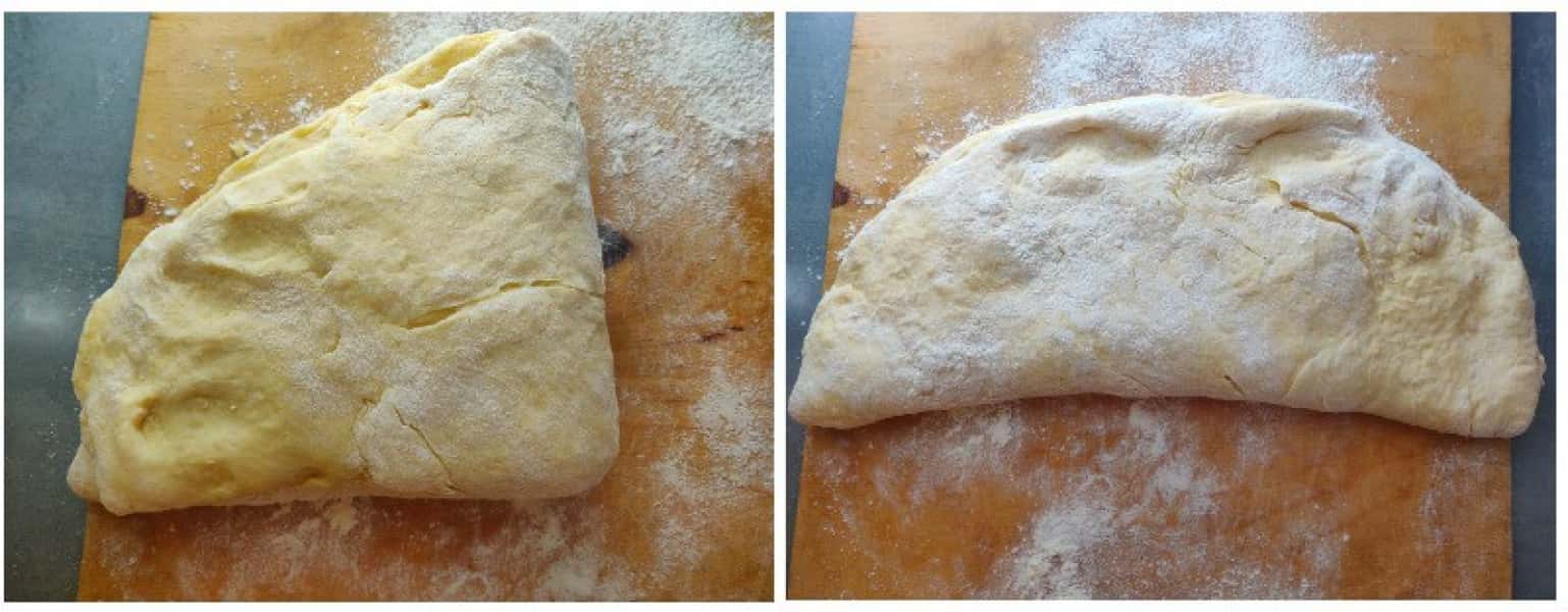 Даємо час, щоб трохи підросло,тоді знову розтягуємо і складаємо конвертиком. Тепер залишаємо орієнтовно на годину у спокої, щоб гарно виросло.
