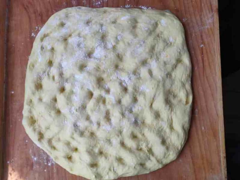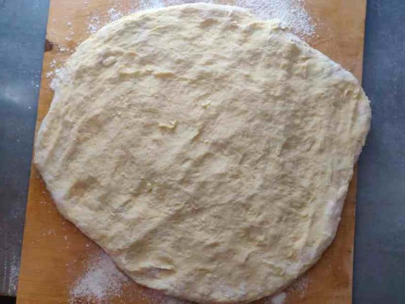 Коли тісто виросло і знову ж таки руками розтягуємо до товщини 1см.