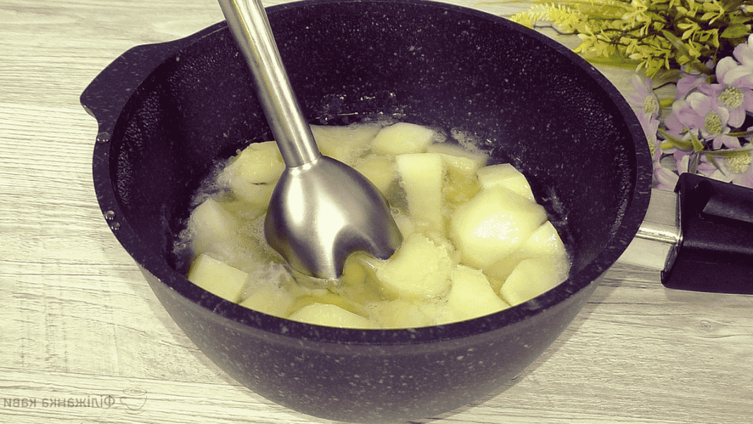 Потім картоплю треба подрібнити прямо в воді, я використовую блендер.