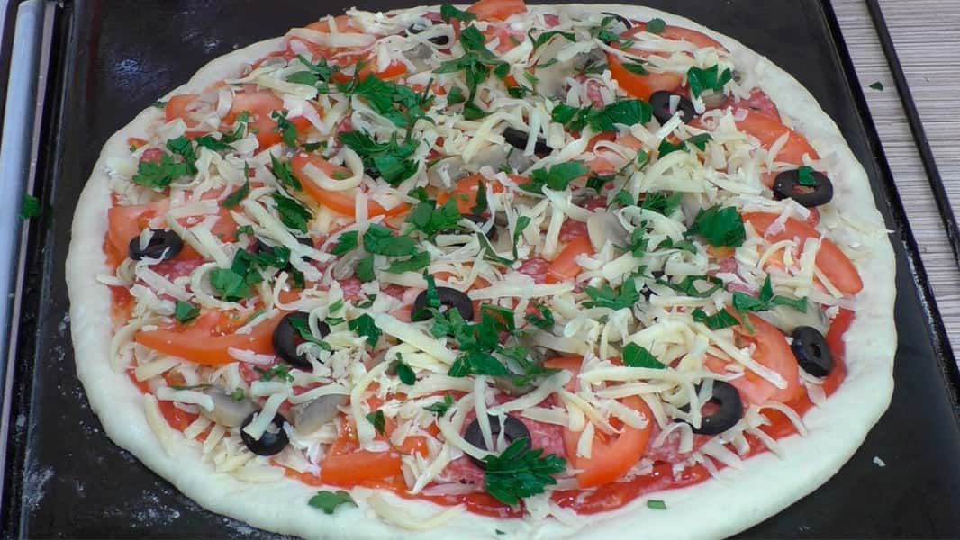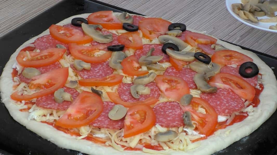 Всім привіт. Сьогодні готуватимемо смачну домашню піцу на дріжджовому тісті. Піца з Салямі, помідорами, печерицями та сиром – що може бути смачнішим!? Рецепт простий – по ньому кожен зможе приготувати піцу в домашніх умовах.