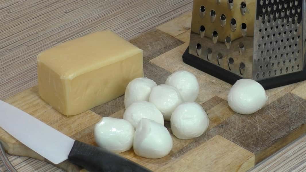 Ну і звичайно сир. Я візьму 2 види сиру. Це моцареллу та голландський. Голландський натираємо на великій тертці, моцареллу можна нарізати.