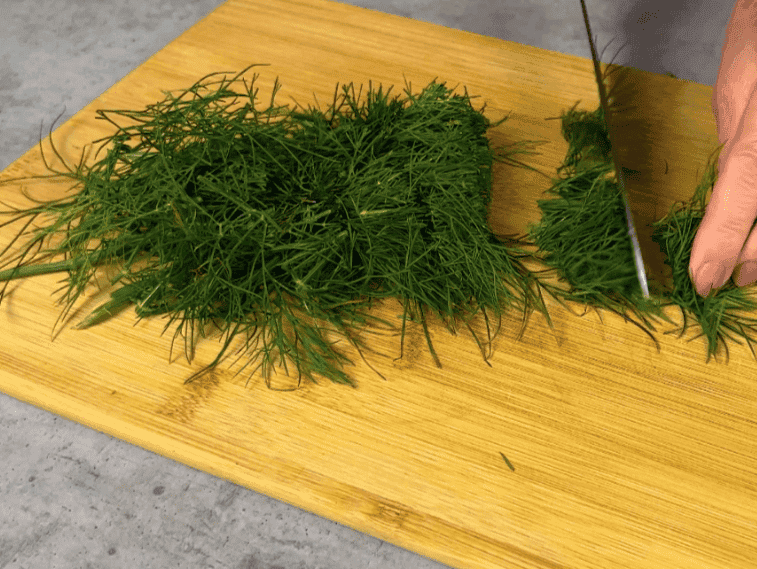 Пучок кропу крупно нарізаємо.