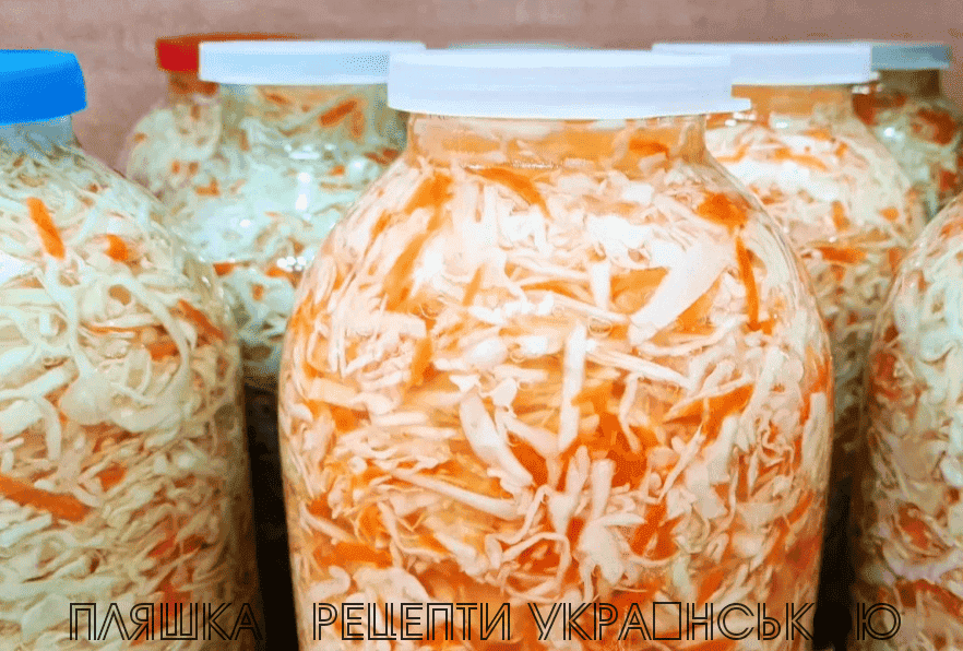 Хрумка квашена капуста на зиму, яка зберігається довго і не темніє, не тягнеться. Цей рецепт вважаю знахідкою: не треба додавати ні цукор, ні оцет, жодних зайвих інгредієнтів. Навіть витримки в теплі (як ми звикли, 3 доби) – ні, тобто зробив, закрив та прибрав на зберігання! На зберіганні сам процес ферментації відбудеться, цьому рецепту дуже багато років, тому рекомендую і Вам.