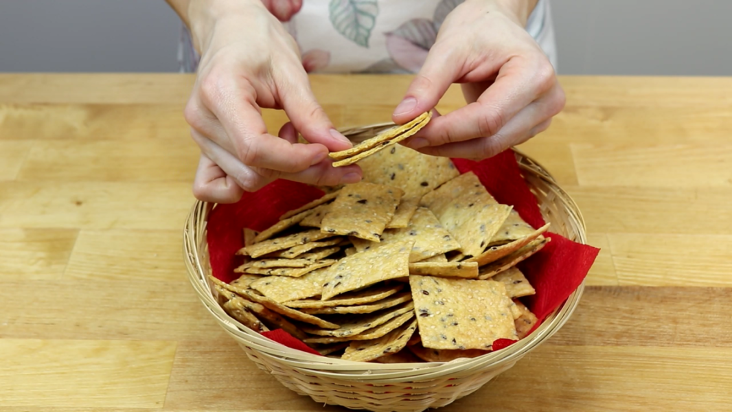 З усієї порції тіста виходить 2 дека хрусткого крекеру. Дуже швидко, просто та смачно!