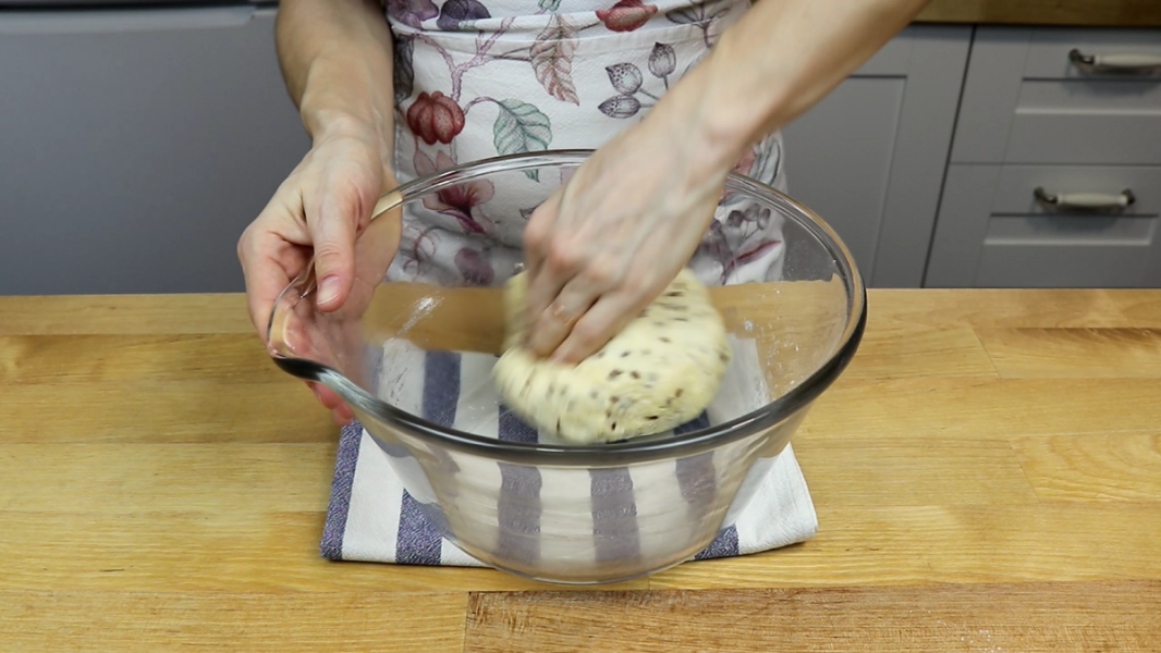 Готове тісто м’яке та нелипке. Накриваю його мискою та залишаю відпочити на 30 хвилин.