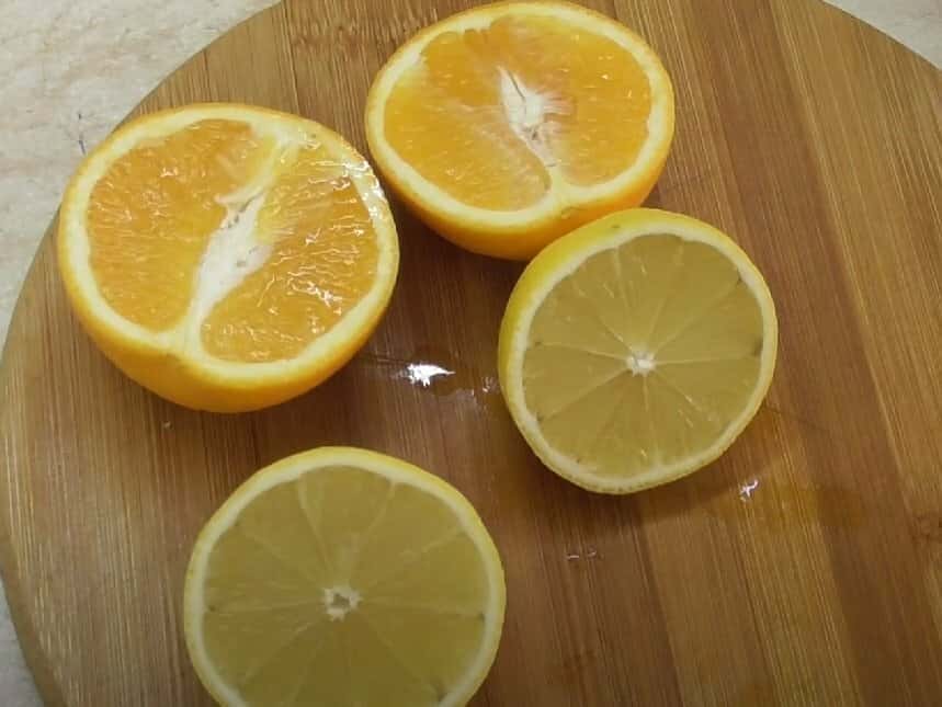 Тим часом, підготуємо цитрусові. Апельсин і лимон миємо і розрізаємо навпіл,