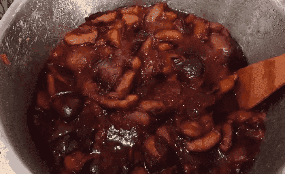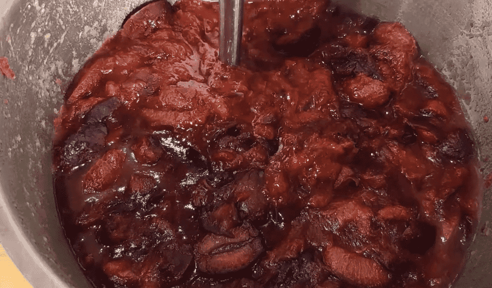 3. Слива пустила сік і добре розварилася, знімаємо каструлю з плити і даємо трохи охолонути.