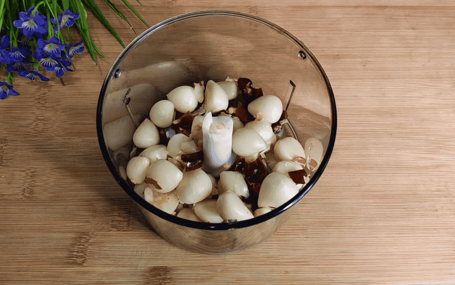 4. Беремо часник 100 грамів, щоб було простіше почистити заздалегідь заливаємо його водою.