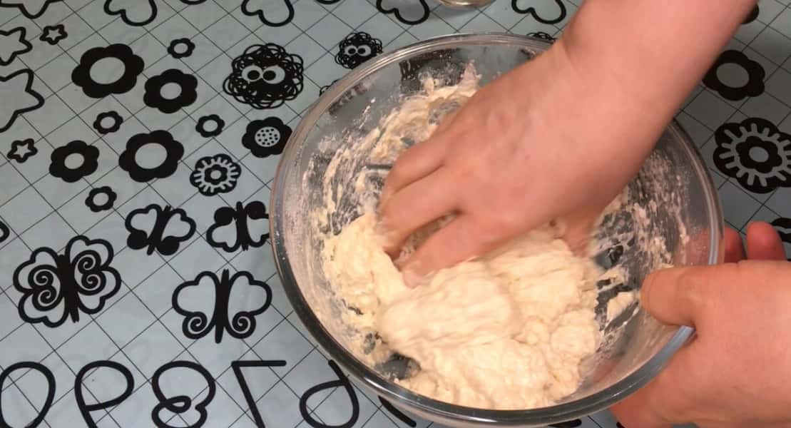 Тісто в процесі замісу стає гладким, м’яким і шовковистим і зовсім не липне до рук. У процесі замісу я додала ще 30 г борошна.