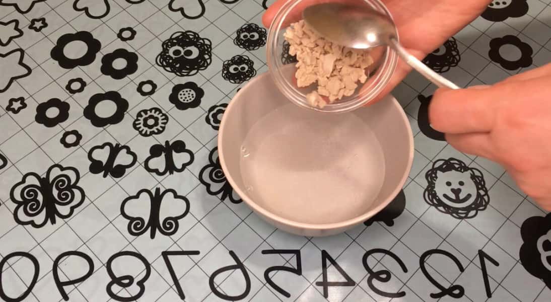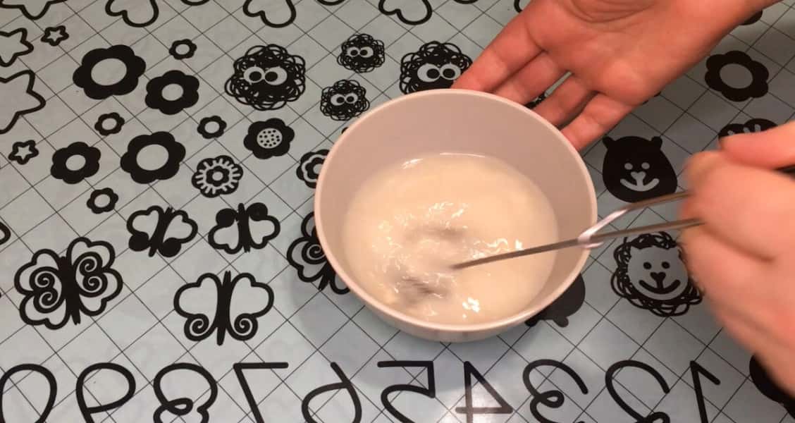 У чашку відправляємо 1 ст л цукру, вливаємо 150 мл теплої води, додаємо 18 г живих дріжджів, розмішуємо, щоб цукор і дріжджі розчинилися.