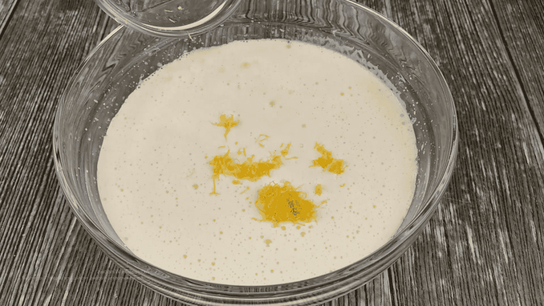 У збиті яйця додаємо 12 ст. л рафінованої олії, 12 ст. л молока кімнатної температури, сік і цедру половини 1 лимона. Перемішуємо міксером 30 сек., щоб поєднати продукти. Збивати вже не треба.