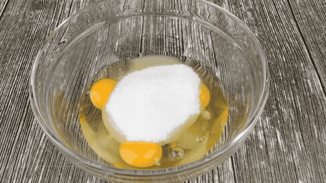 Для початку в миску розбиваємо 3 яйця кімнатної температури. Додаємо 12 ст. л цукру та дрібку солі для балансу смаків.