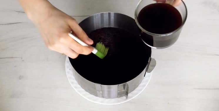 14. Збірка торта. На тарілку викласти корж, просочити трохи кавою.