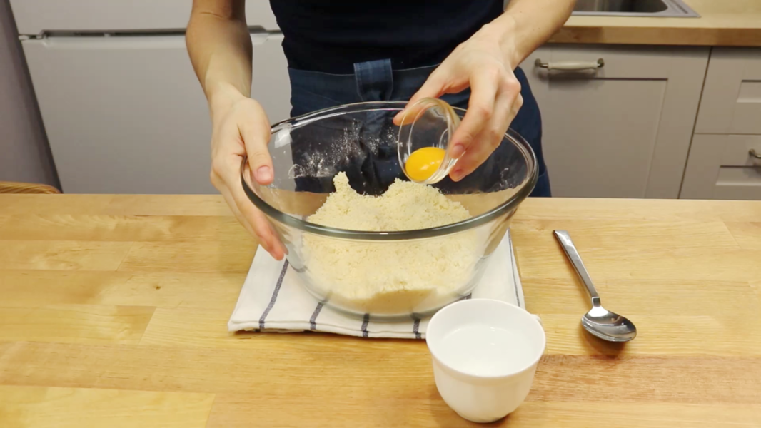 Вимішувати не потрібно, просто зібрати в грудку. Якщо тісто кришиться, можна додати води.