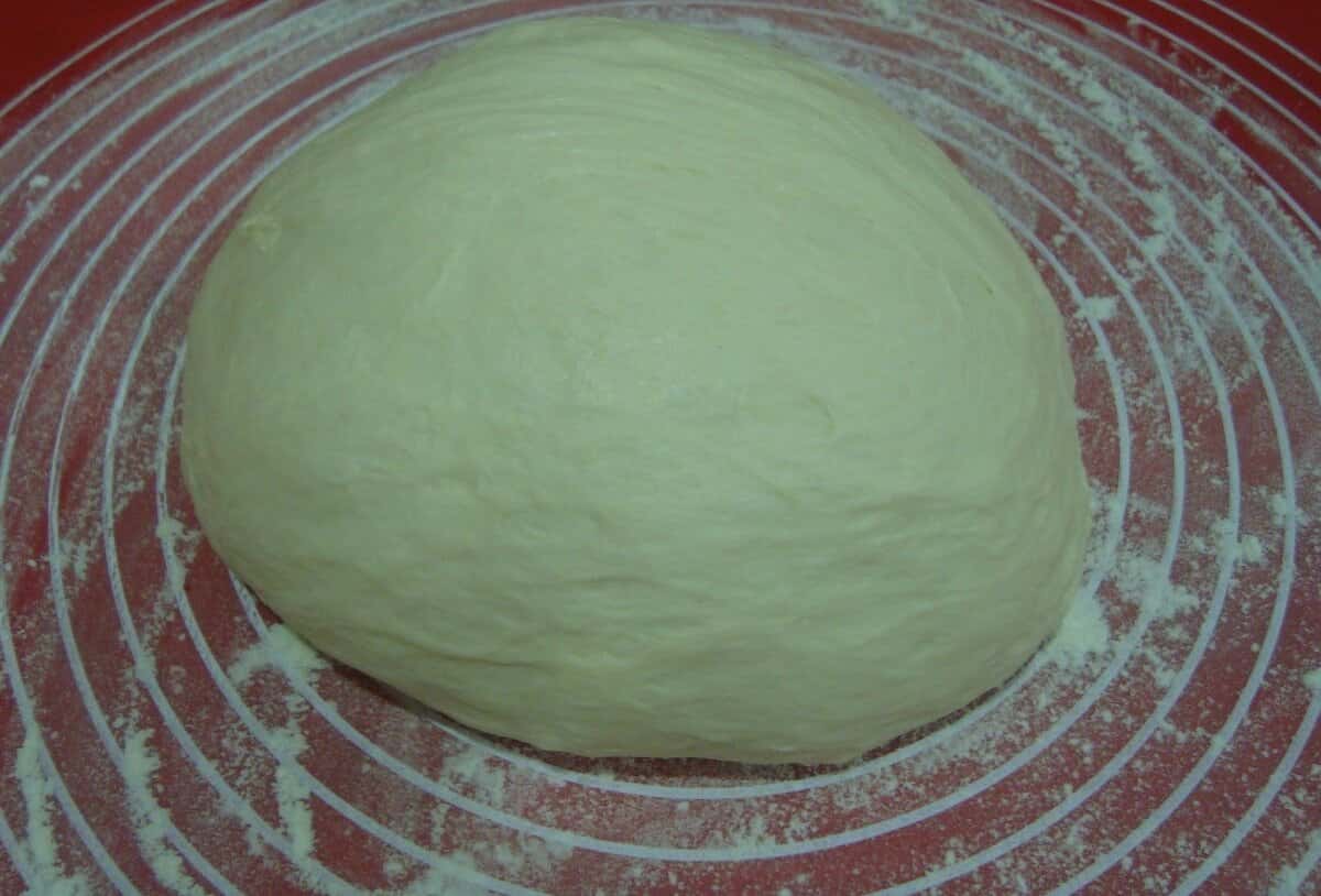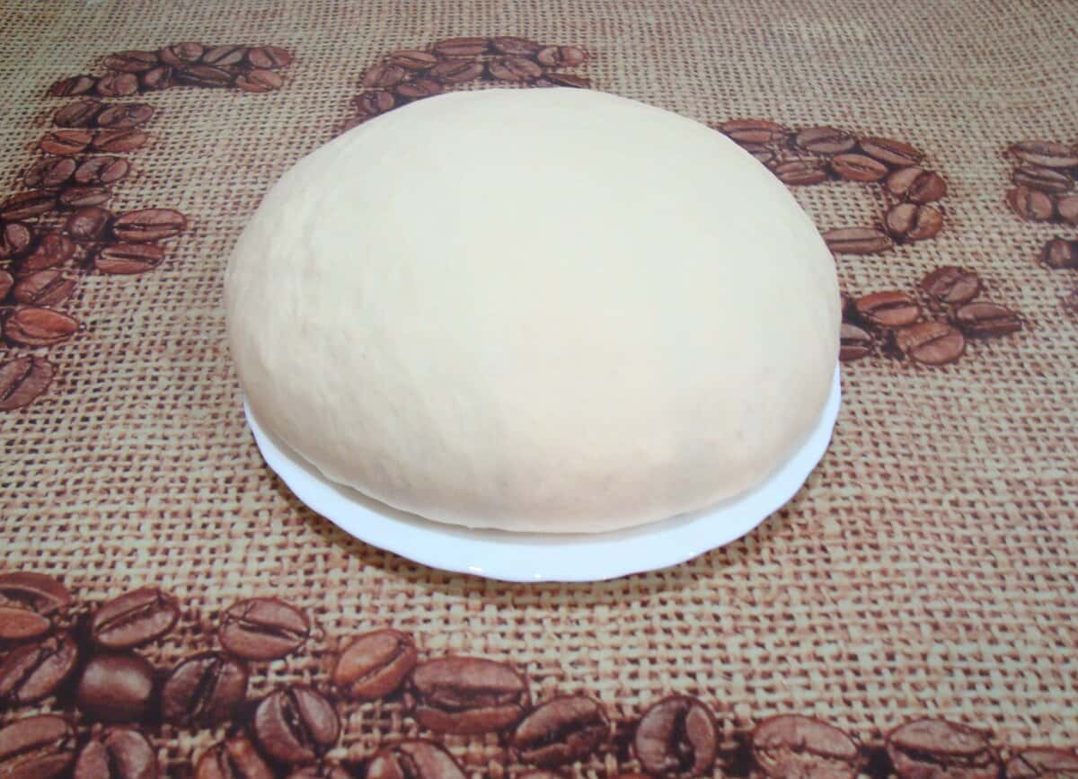 Стіл посипаю злегка борошном і викладаю тісто. Тісто обминаю і надаю круглу форму. Тісто готове, можна приступати до формування пиріжків