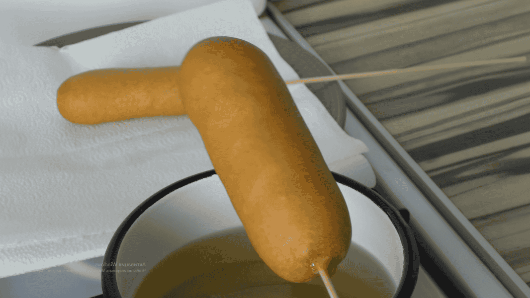 Для звичайного корн-догу сосиски просто протикаємомо шпажкою.