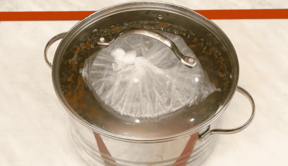 Баклажани легкі і спливають нагору, тому придавіть їх чимось – тарілкою або кришкою і за цей час кілька разів переверніть для рівномірного бланшування.