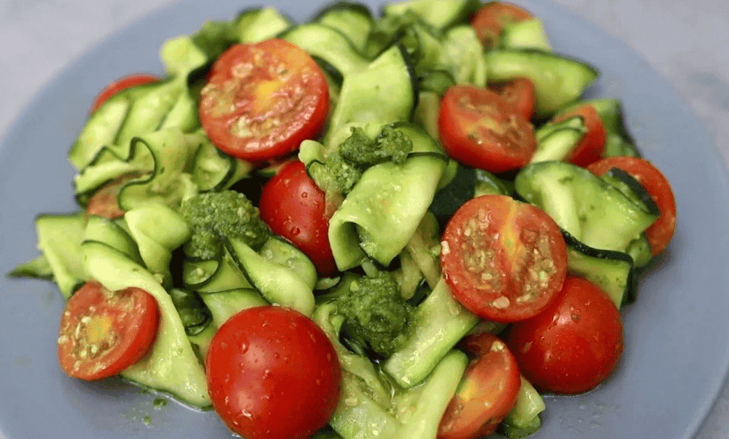 Літній легкий салат з кабачків та помідорів з соусом