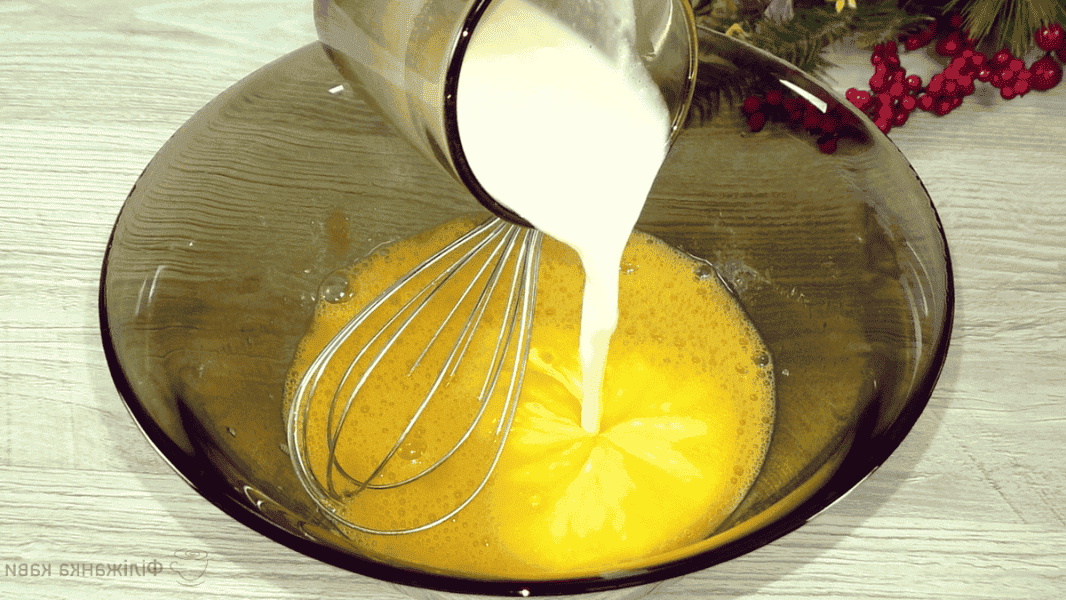 У яєчну суміш додаю кефір, краще якщо він буде кімнатної температури. Додаю олію.