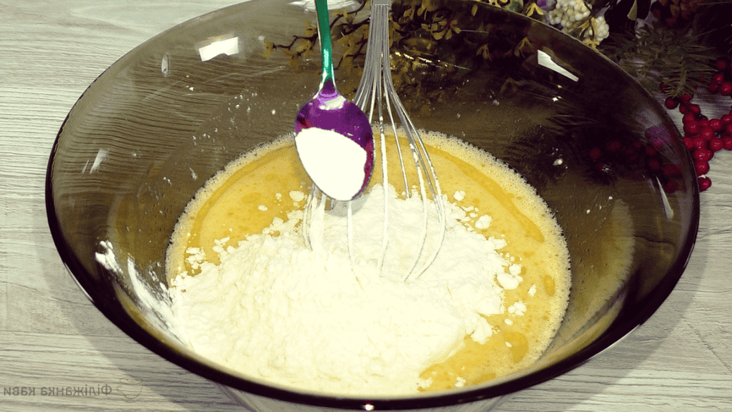 Додаю ще 3 ст. л. борошна, зазвичай цього достатньо, перемішую, щоб не було грудочок.